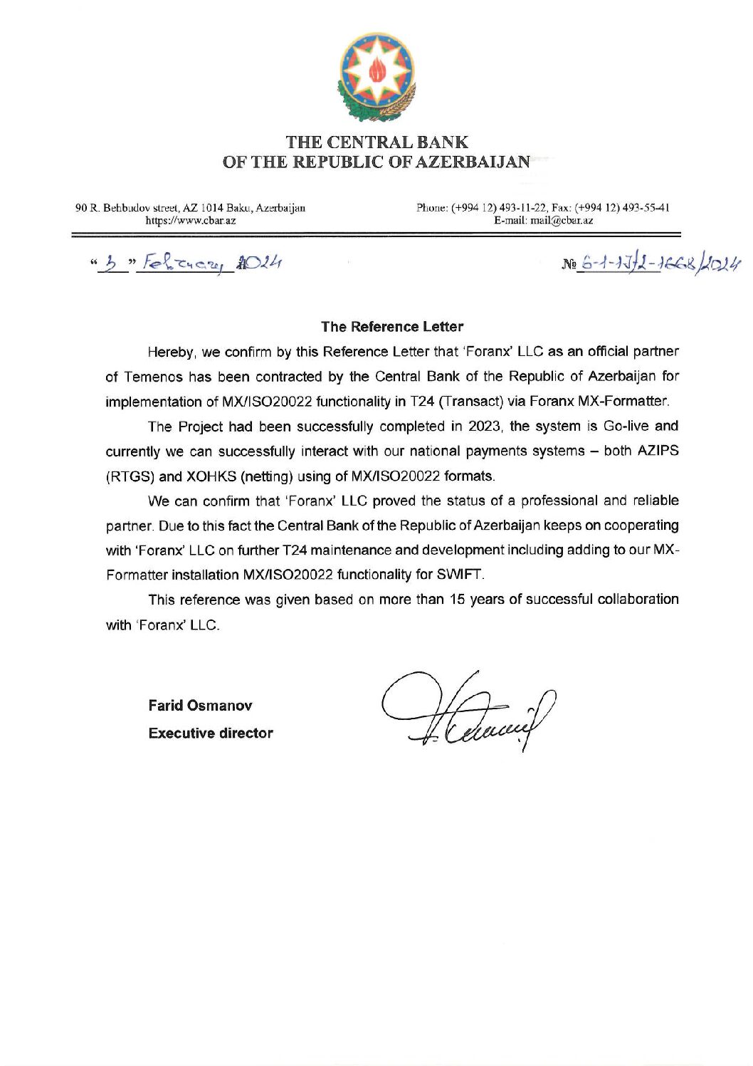 Development of support of ISO 20022 standard for international payment system SWIFT and Local Clearing system of the Republic of Azerbaijan.